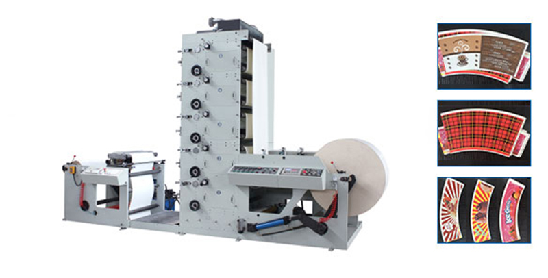 Esta impresora flexográfica ha sido especialmente diseñada para imprimir planos de los vasos de papel. Tiene la capacidad de llevar a cabo de forma automática el desenrollado, corrección de desviación del rollo de papel, tratamiento de corona, impresión, secado y rebobinado.